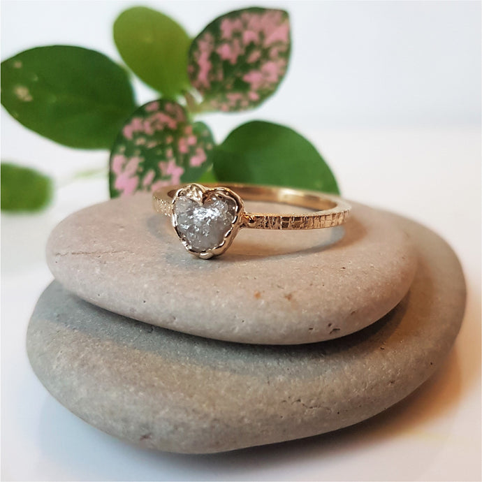 Heart Shape Rough Diamond Engagement ring, 10k Yellow Gold , size 7.5