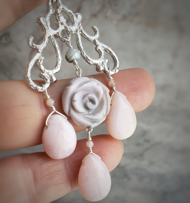 Girandole Chandeliers in Sterling Silver with Pink Opal