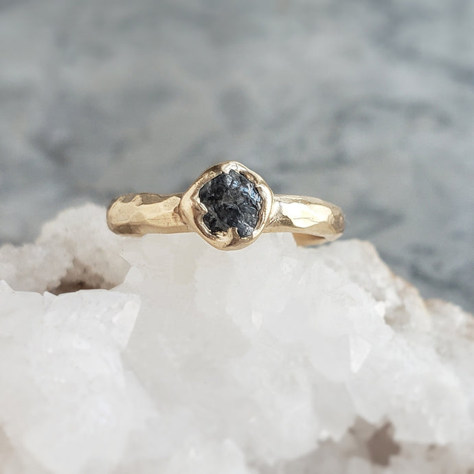 Rough Emerald, Engagement Ring in 10k Yellow gold
